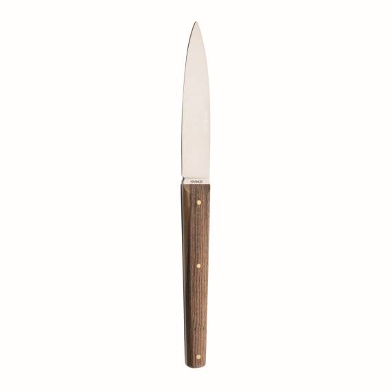 The MIRAGE LES ESSENCES steak knife collection from Maison Degrenne exudes sheer elegance. Each knife boasts a subtle and sophisticated blade design, perfectly honed for precision, complemented by handles crafted from various species of wood in light or dark tones. This harmonious fusion seamlessly complements our other cutlery collections. The discerning quality of the selected woods is further accentuated by their characteristic aromatic essence, evoking the serene ambiance of a forest stroll. Crafted in France with reverence for cutlery traditions, these knives are best cared for by handwashing to maintain their sharpness and preserve the integrity of the natural materials.